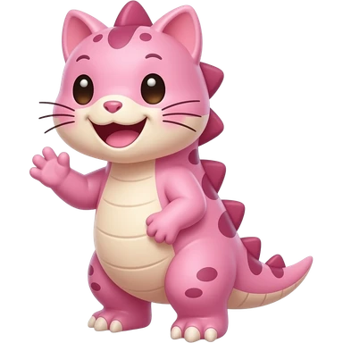 pink dinosaur body with cute pink kitty face standing on two legs looking happy and waving emoji