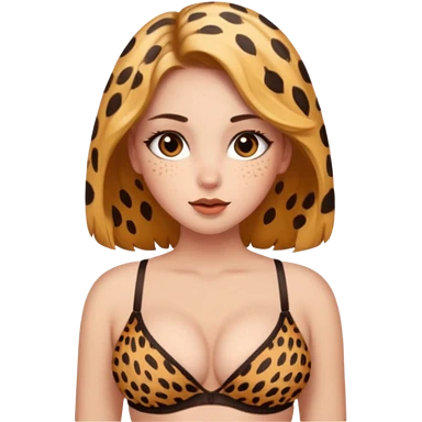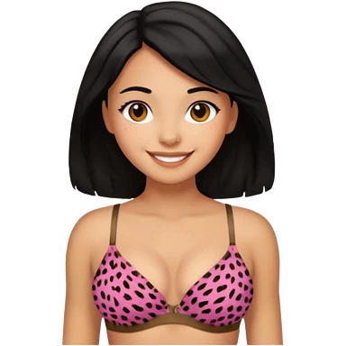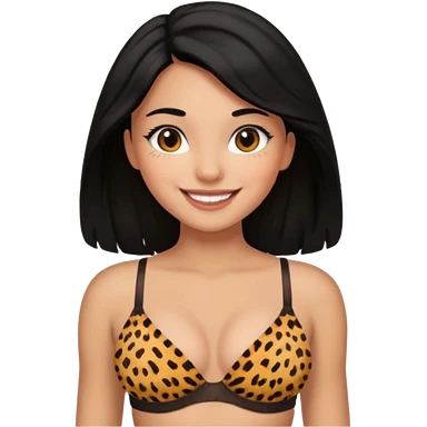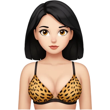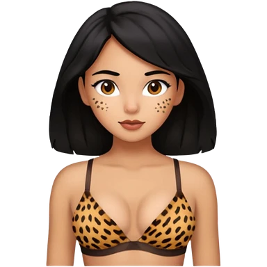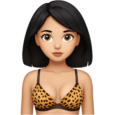a girl with big boobs wearing a bra cheeta print black haired girl emoji