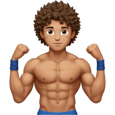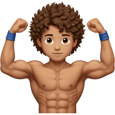 muscular teen boy with veiny hands arms and biceps. has messy curly hair with tan skintone emoji