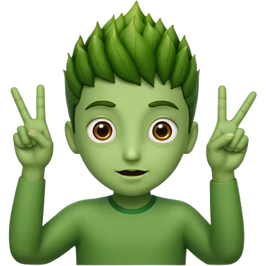 bhindi with big eyes antwo hands showing vitory sign emoji