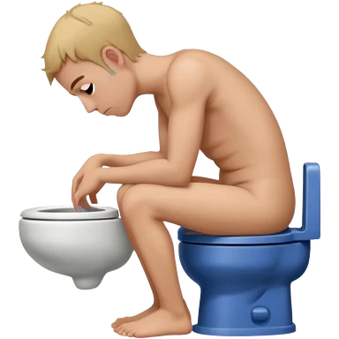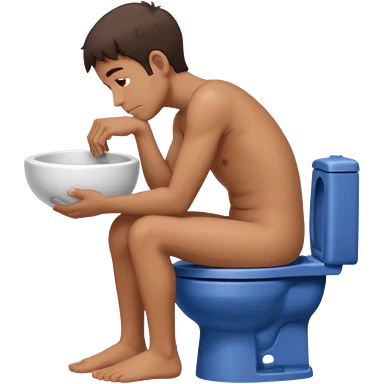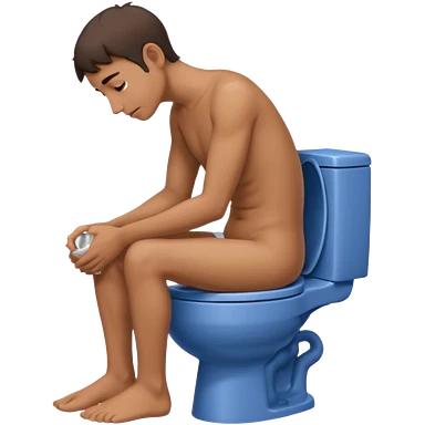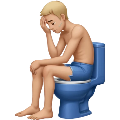 Man siting in a toilet bowl head down hands on the knee the side side view and dress emoji