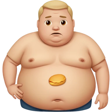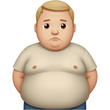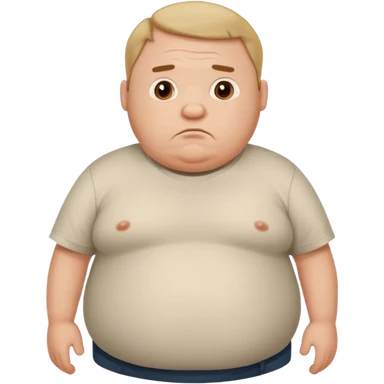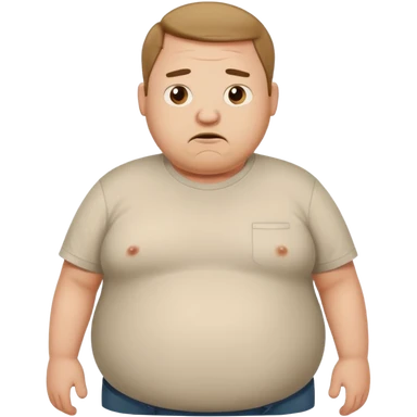 a cartoon fat man holding his stomach wearing t shirt, while looking confused? dont show nipples emoji