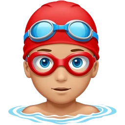 Boy Swimmer in a red swim and goggles cap with blue eyes emoji