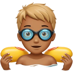 Boy Swimmer in a red swim cap with blue eyes emoji