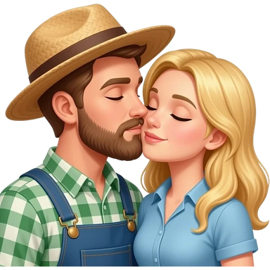 Contadino biondo senza barba e contadina bionda che si baciano emoji
