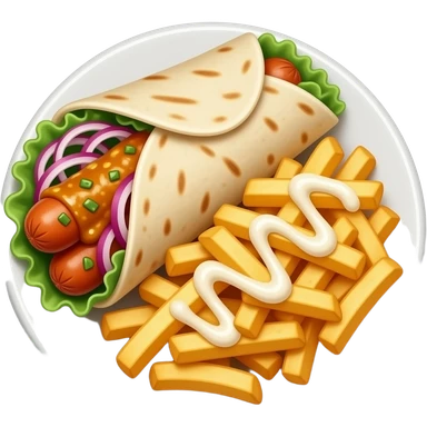 erstelle ein emoji eines taxitellers (currywurst, gyros, pommes mit mayo, alles auf einem teller) emoji