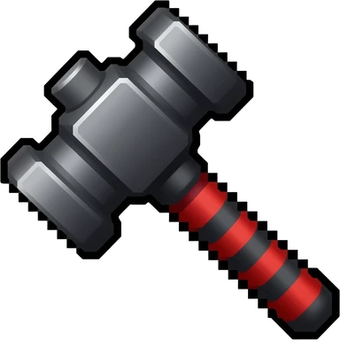 A really pixelated ban-looking but red and black/white hammer representing admin emoji