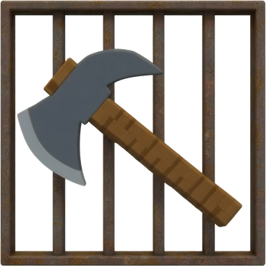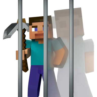Half of a minecraft character holding a pickaxe behind bars emoji