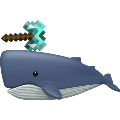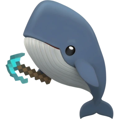 A whale with a minecraft diamond pickaxe on top of it's head emoji