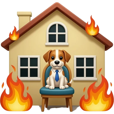 crea un emoji de un perro sentado en una silla como una persona y atras se esta quemando la casa el perro tiene que estar dentro de la casa y sin traje emoji