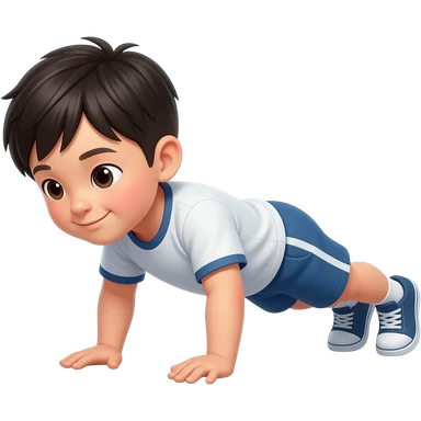 一个中国小男孩在做俯卧撑 emoji