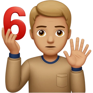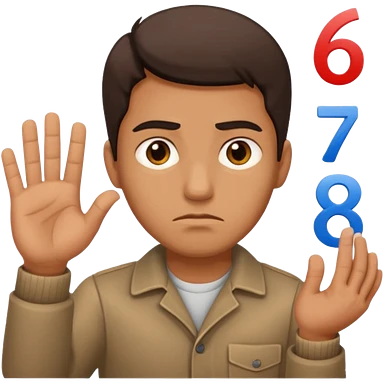 man frowning holding up numbers 6 and 7 emoji