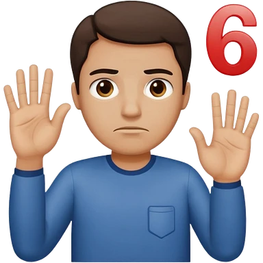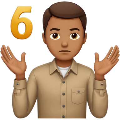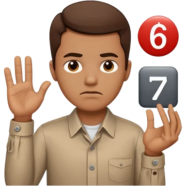 man frowning holding up numbers 6 in left hand and 7 in right hand emoji