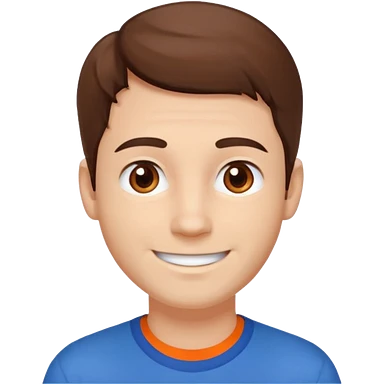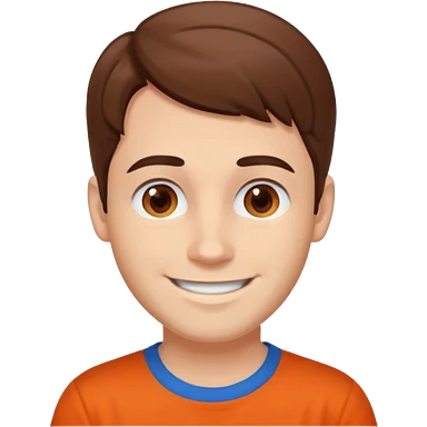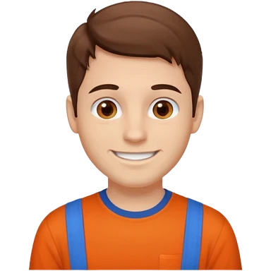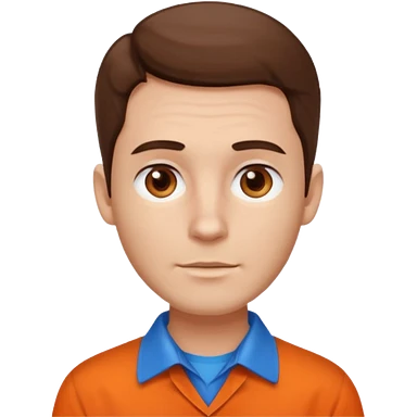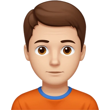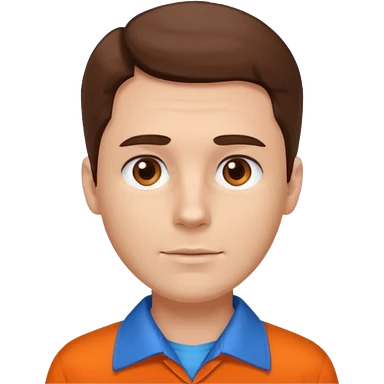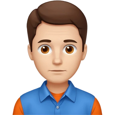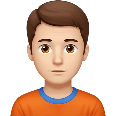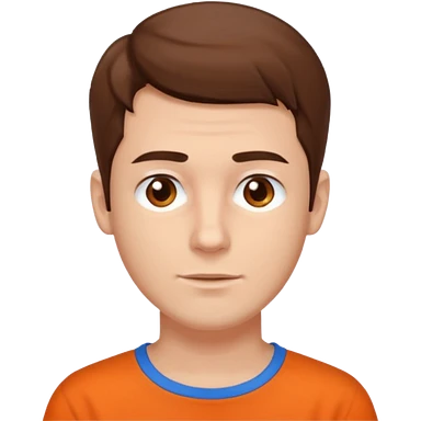 male, white skin, brown hair, brown eyes, orange shirt and blue collarbone, no wrinkles emoji