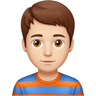 male, white skin, brown hair, brown eyes, orange and blue shirt emoji