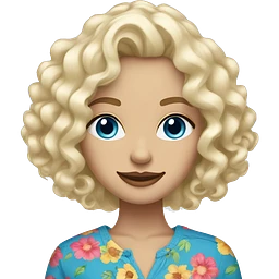 White Woman curly blonde hair blue eyes pink lipstick emoji