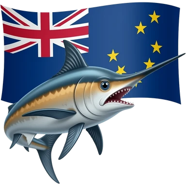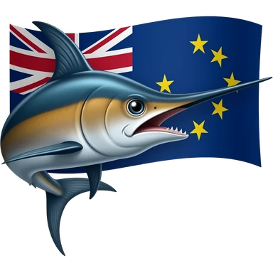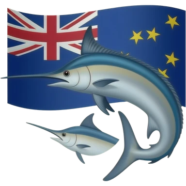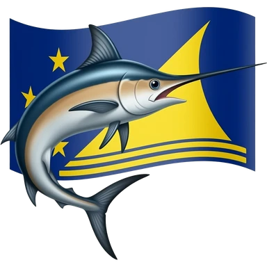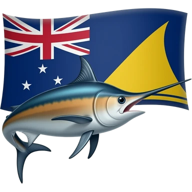 Marlin looking right curved and Tokelau flag behind blue and yellow emoji