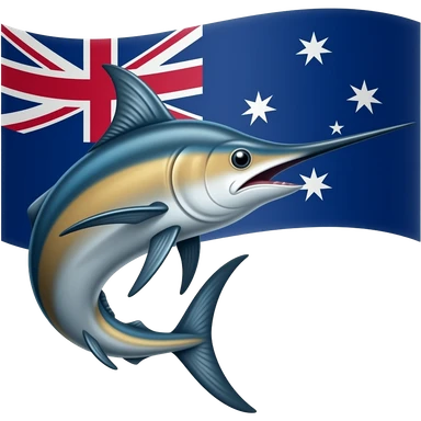 Marlin curved looking right with Tokelau falg behind emoji