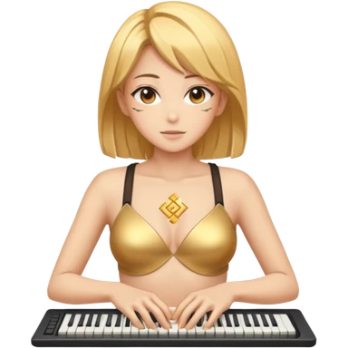Нарисуй мне голдую женщину с открытой грудью аниме тянку в символах из клавиатуры. emoji