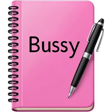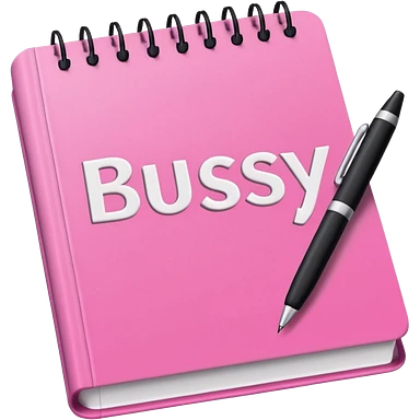 big pink book and note pen add on it the word BUSY in bold black emoji