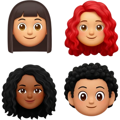 Faça o emoji de 4 amigas, uma com cabelo liso, uma com cabelo cacheado longo vermelho, uma com cabelo cacheado longo preto e uma com. O cabelo cacheado curto preto emoji