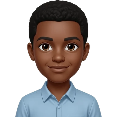 um menino de 13 anos com cara de 12, ele tem cabelo marrom escuro e pele negra, o olho dele é castanho escuro e ele está usando uma camisa preta emoji