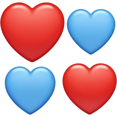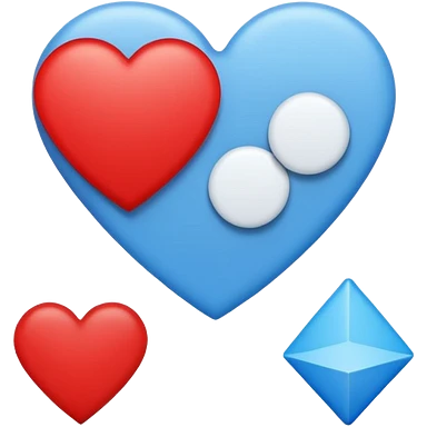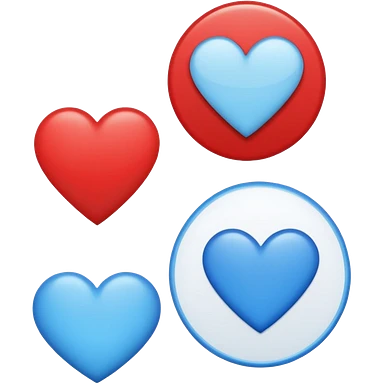 Red circle with light blue triangle by the top left and regular blue heart by the other side with two white circles with one red circle on the left white circle and blue on the other side emoji