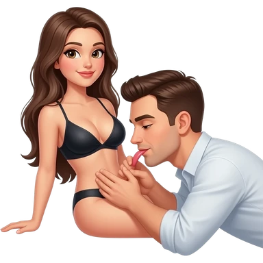Beautiful woman with big breasts, perfect nipples, lean back her legs spread out and a guy licking her pussy emoji