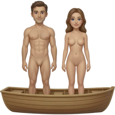 Full body image of naked, completely naked man and woman without a clothes on boat without clothes on emoji