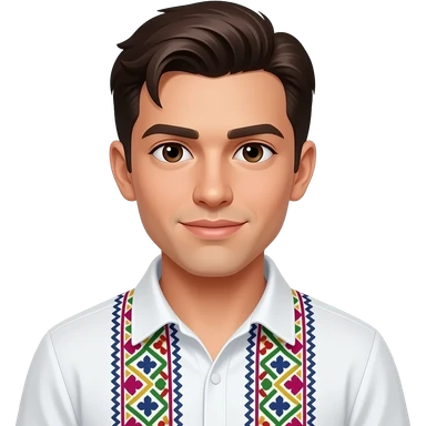 Tan guy with dark brown pushed back hair with a fringe wearing a in Mexican thats 19 emoji