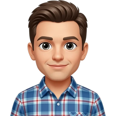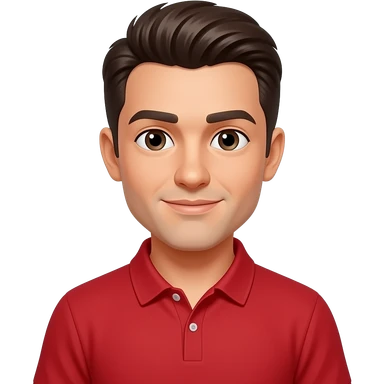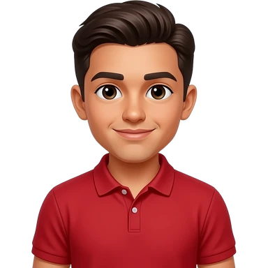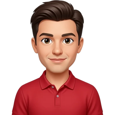 Tan guy with dark brown pushed back hair wearing a red polo emoji