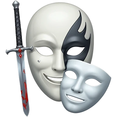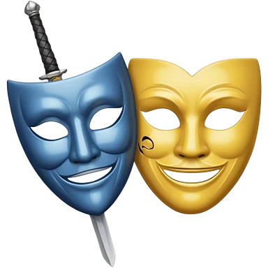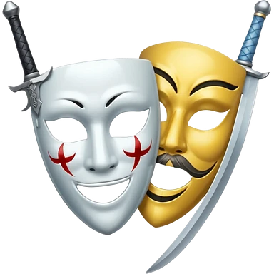 A sword in the middle, on the write sad mask and on the left happy mask emoji