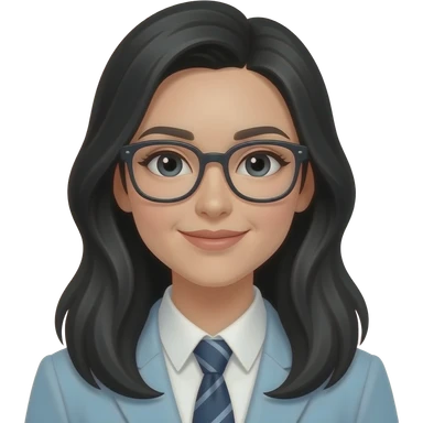femme, cheveux longs noirs à lunette, tenue blouse blazern à l'école emoji