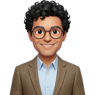 professeur homme curly black hair, lunettes avec un tableau derrière emoji