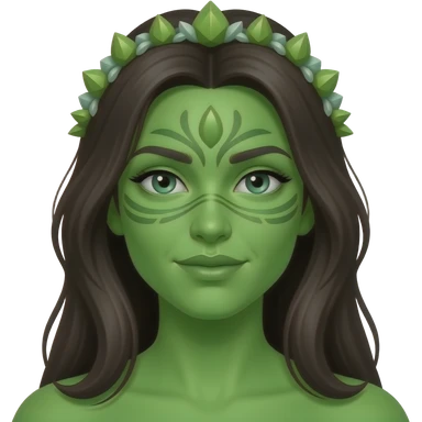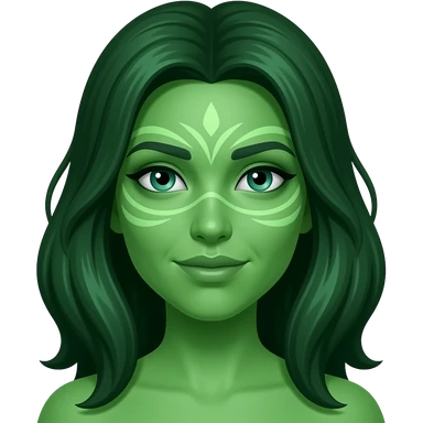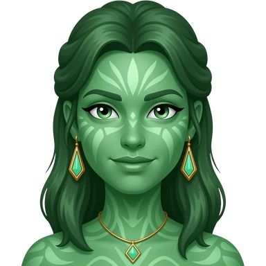 llustrate a Pandora-style female avatar with radiant green skin, intricate facial markings emoji