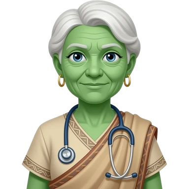 a Avatar green skin old women medical wearing ancient cloth with half body, icon emoji