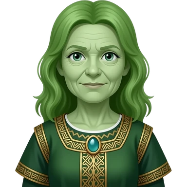 a Avatar green skin and hair old women medival wearing ancient cloth, half body, icon emoji