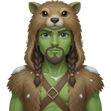 a Avatar green skin wearing ancient animal skin cloth with snow, half body, icon emoji
