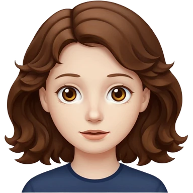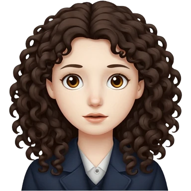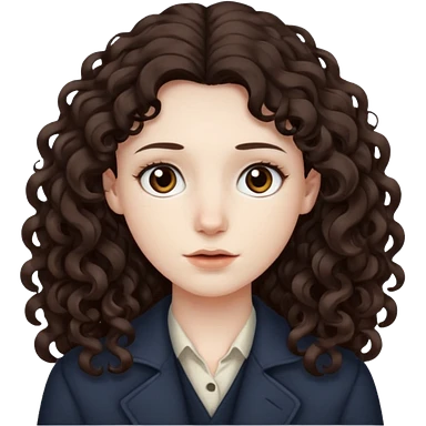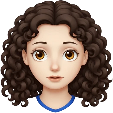 Pale skin, long curly dark brown hair, medium brown eyes. emoji