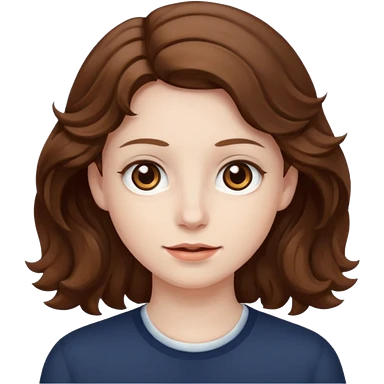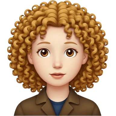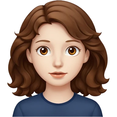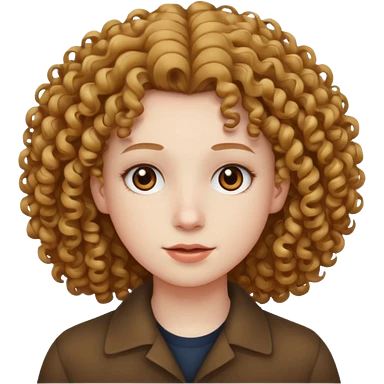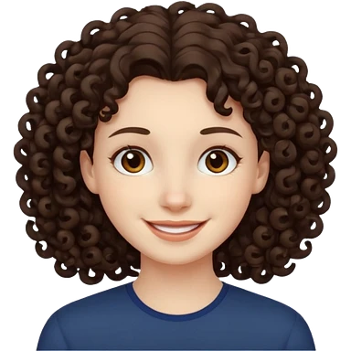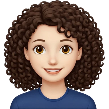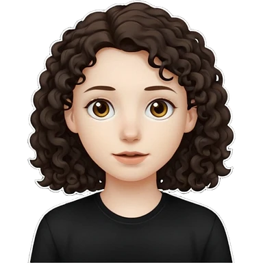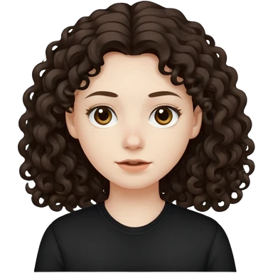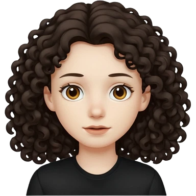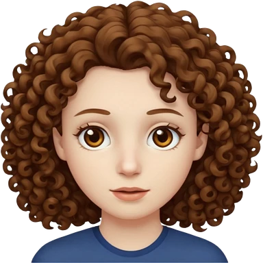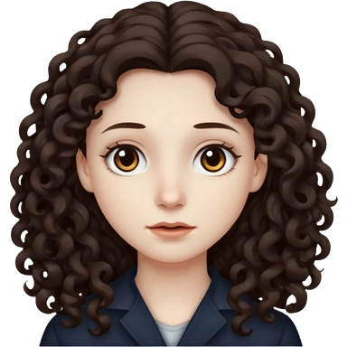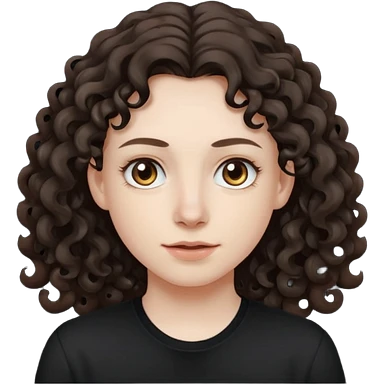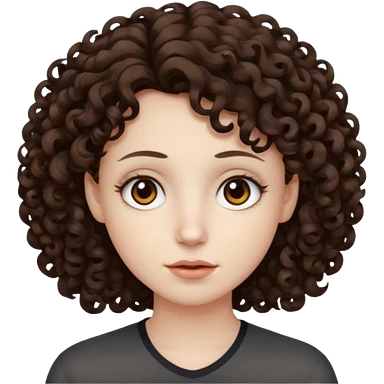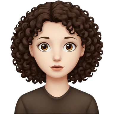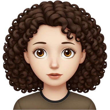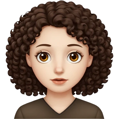 Pale skin, curly dark brown hair, medium brown eyes. emoji