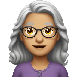 Younger Grandma with longer gray hair blue eyes sunglasses emoji