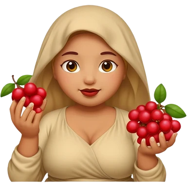 Cute emoji female chubby with a berry she is tan and moroccan emoji