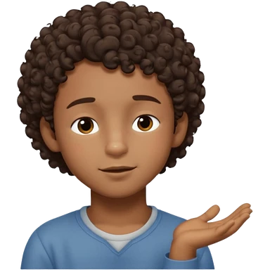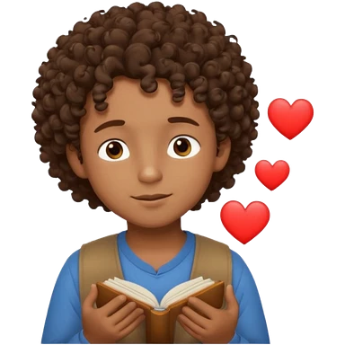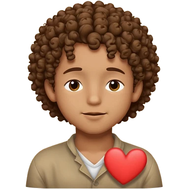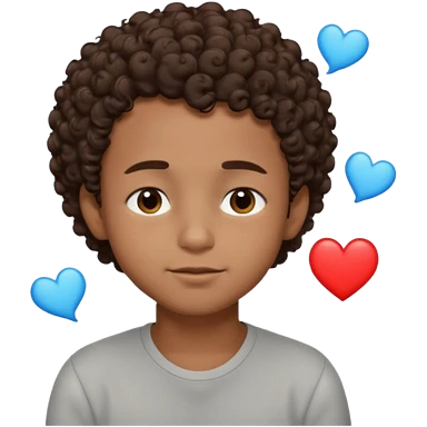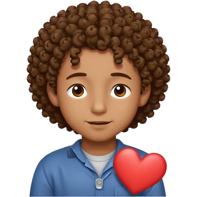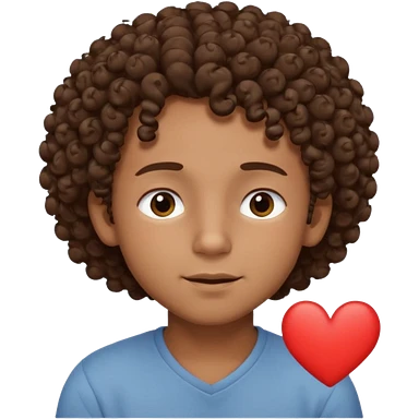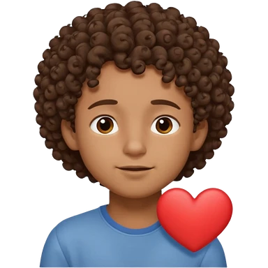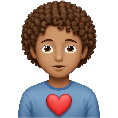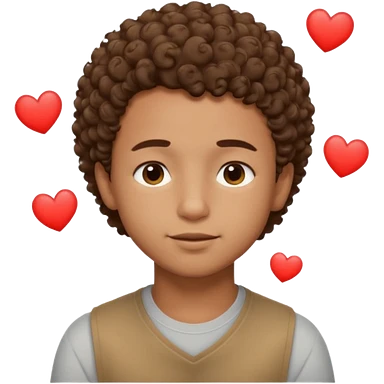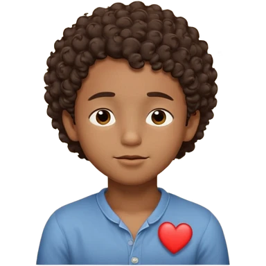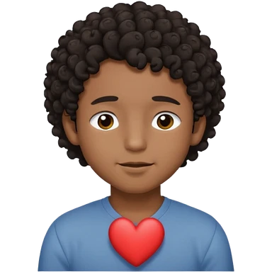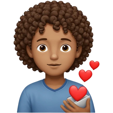Brown boy with curly hair dreaming abouthis girlfriend small smirk on his face eyes closed with a little heart next to him emoji