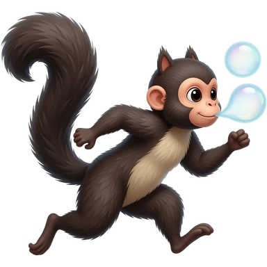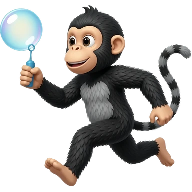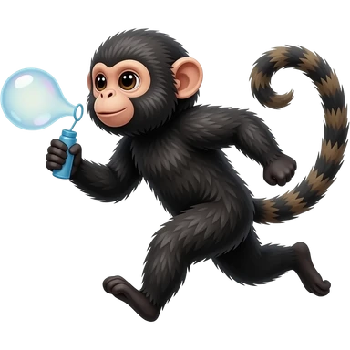 ouistiti noir et gris qui fait des bulles en courant emoji