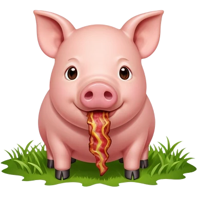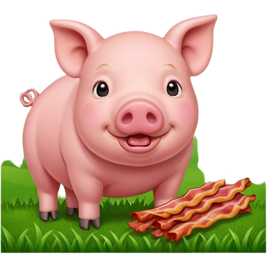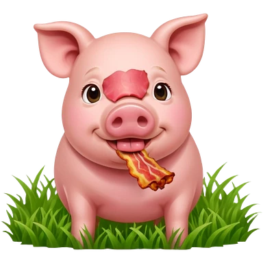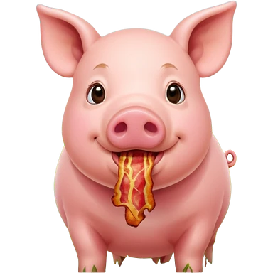 Pig eating bacon on a farm emoji