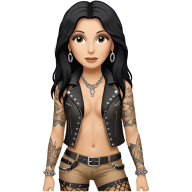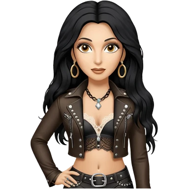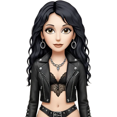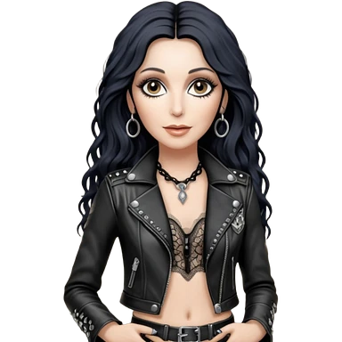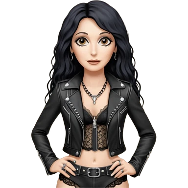 realistic cinematic singer Cher in a typical rocker's attractive outfit with leather and lace, half-naked as in the video If I Could Turn Back Time emoji