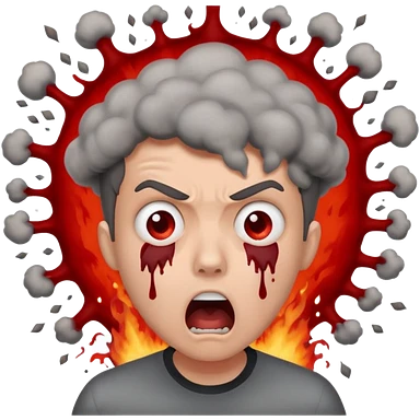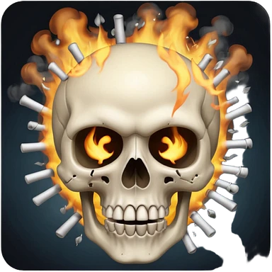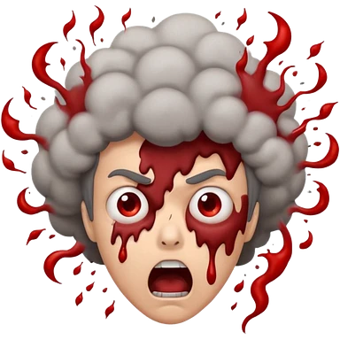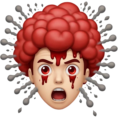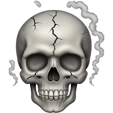 Make a skull emoji whose head is blasted off and smoke is coming from its head from inside his head pieces should be in air and the look on his face should be like scared emoji