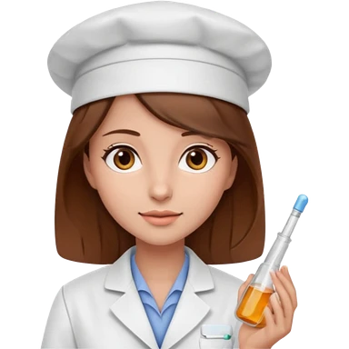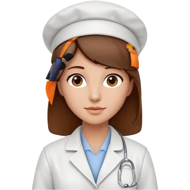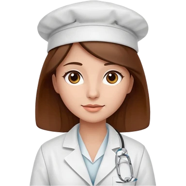 Make a pharmacy girl pretty with brown hat and eyes wearing labcoat emoji