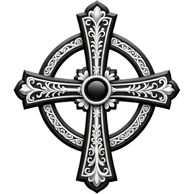 a black and white detailed cross emoji