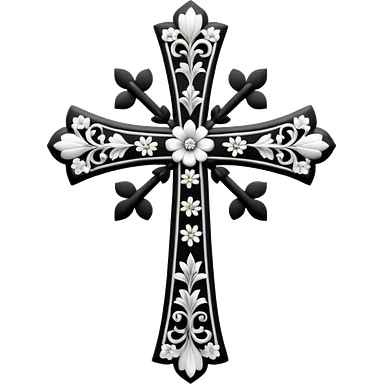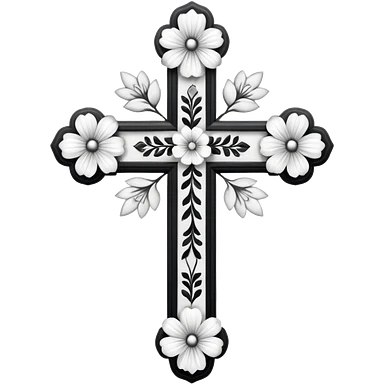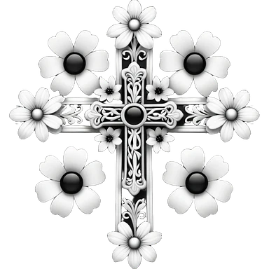 a black and white detailed cross with black and white flower emoji